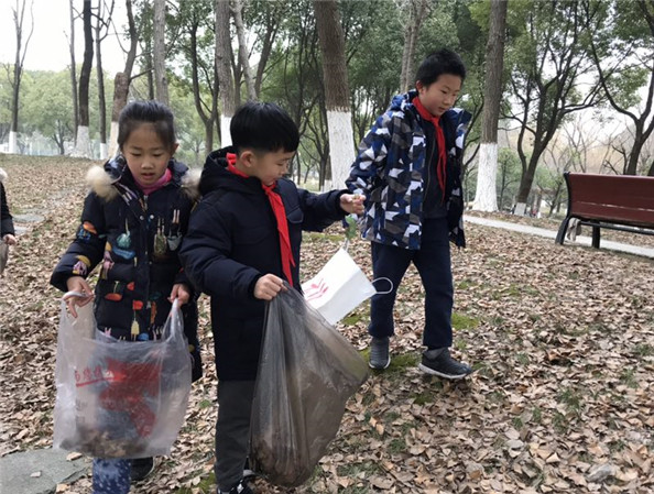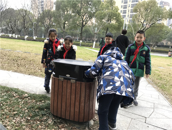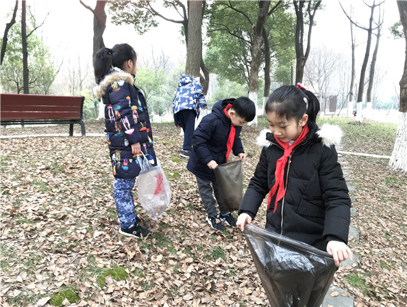 “三九四九不出手,雏鹰小队显身手”,一月的方洲公园寒意阵阵,方洲小学二(1)大方虎中队爱丁堡小队的队员们正在热火朝天地开展“致敬劳动最光荣,乐享环保醉公益”活动。