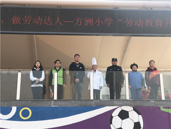 启动仪式上学校特地邀请同学们身边的劳动者代表:礼仪岗成员、保洁阿姨、保安叔叔、厨师、教师代表、护校队家长、家委会家长等,他们用真情诉说表达了为他人,为孩子的劳动之乐,劳动之获,劳动之感。质朴、走心的话语让全体方洲学子感触多多,感动满满。