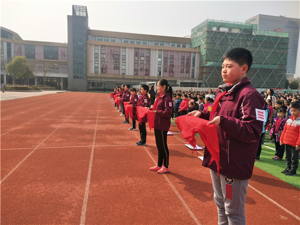3月11日上午的升旗仪式上,方洲小学副大队长杨天赟真情地讲述了自己从一个懵懂的儿童成长为一名优秀少先队小干部的经历,赢得了队员们的阵阵掌声。随后大队辅导员刘健老师勉励所有二到六年级少先队员们都能上好课、说好话、走好路、做好操、吃好饭、走好路,为一年级的弟弟妹妹们做榜样,争做新时代的好队员。