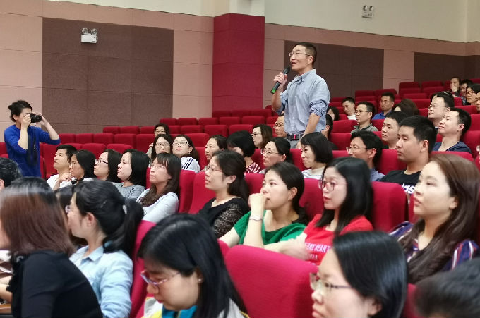 宋娟娟主任还寻找了契合青春前期孩子的生活、学习案例,在现场与家长一同互动。家长们本色出演,在互动中坦承心里真实感受。一阵阵会心的微笑、一次次羞涩的捂脸、一回回赞同的点头……写满了家长的反思、会意和认同。