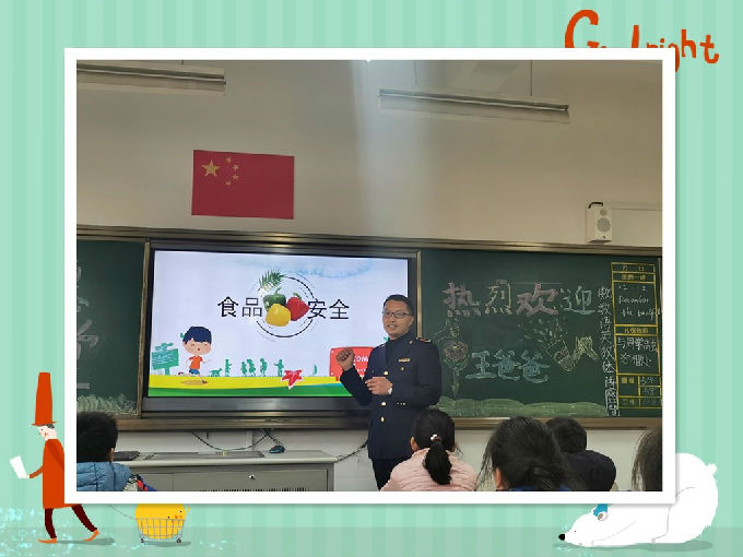 王浥尘爸爸来自于市场监督管理局,他从专业的角度向同学们普及了食品安全的知识,让同学们学会吃得干净,吃得放心,吃得健康!