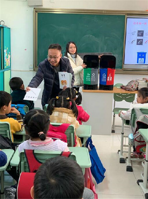 为普及学生有关“垃圾分类”的知识,让孩子们共同参与到“垃圾分类”活动中,从小养成保护环境的责任意识,方洲小学一年(4)班家长志愿者杨淑晴爸爸走进校园,走进班级,开展了"垃圾分类,从我做起"为主题的道德讲堂活动,教小朋友们如何进行垃圾分类。精彩纷呈的垃圾分类知识互动课,给小朋友们送去别样的欢乐。
