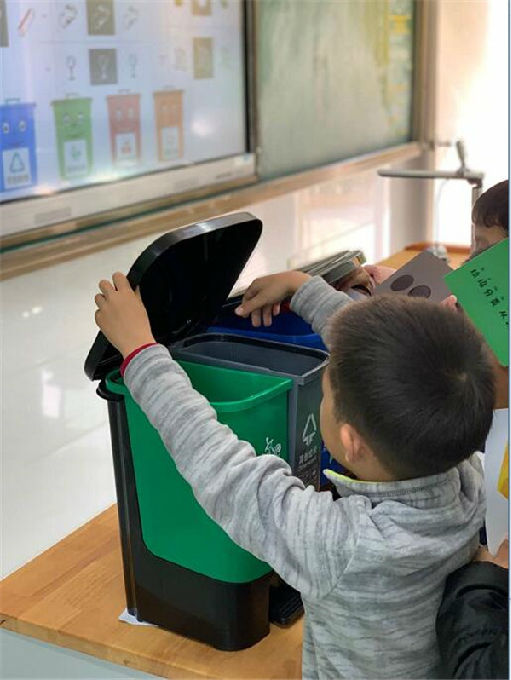 最后,家长组织学生玩游戏——我帮垃圾“回家”,模拟了垃圾分类场景,帮助学生践行“垃圾分类,从我做起”。