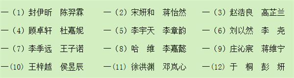 第八周最美方洲娃(2019-2020学年第一学期) 来源: 发布时间:2019-10-29 00:00:00 浏览次数: 次 【字体:小 大】 本周德育养成教育重点是:校内不乱扔垃圾。以下同学表现突出,被评为本周“最美方洲娃”,特此表扬! 分享到: 【打印正文】