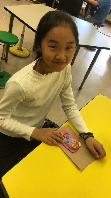 然后老师让我在一张空白纸上写出我们的个人喜好,如喜欢的运动,喜欢的食物,喜欢的颜色,喜欢的职业......然后大家开始画个人logo的草图。终于要开始了,每个人都拿了一张锡纸,一块陶土和工具,对着自己的画稿开始制作。我做的logo是一个冰激凌,右上角还有一个发光的太阳。我先用手捏出了个正方形。没等我拎起来,它就断了,于是我又重新做了个厚一点的长方形,再用工具磨平,底座就做好了。下面要做冰激凌了。我在底座上捏出了冰激凌的形状。大功告成之后就是上色了。我选了我喜欢的金色,黄色,粉色和紫色。首先把这几个颜色挤在一张纸板上,因为粉色颜色较深,我就加了点白色,变成浅粉色。上色环节并没有想象的简单,因为很容易涂到别的地方,于是我选了小号刷子来避免混色。涂色完成后,放在太阳底下晒干就可以了。老师还让我们站起来讲讲自己的设计理念。讲完后还有一个巧克力棒和一支铅笔作为奖励。