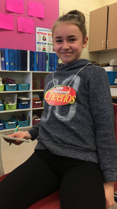 早上来到学校,每一个同学和老师脖子上都挂着一个个食物的包装盒。上午第二节课,老师给我们介绍了今天的活动日程。我们还设计了一款早餐的包装盒,先画出了稿子,配上了一张图片。接着,用彩笔涂上颜色和字母,再写上说明。大家的设计多种多样,创意十足。