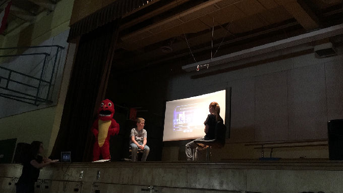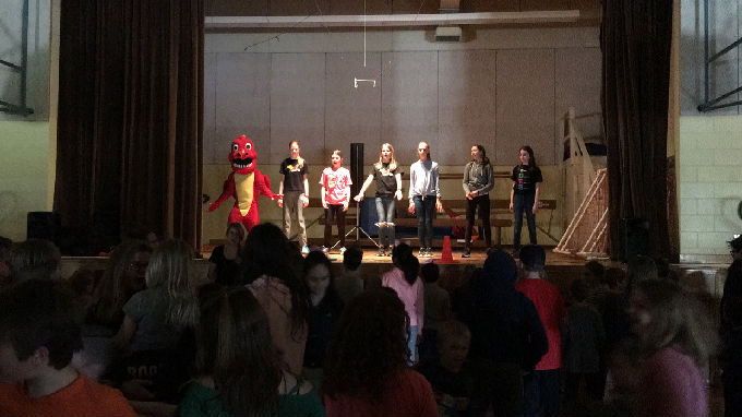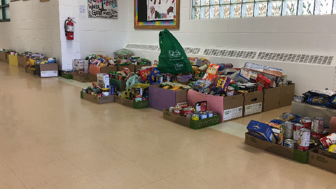 本周五,学校在体育馆里举行了一个盛大的活动——Food Bank活动总结。在这个月里,学校的学生和老师根据家庭住址被分成不同的颜色队伍。大家每天都会带食物投放到学校的指定地点为自己的队伍加分。捐赠的食物用来救助贫困家庭。本周五就是活动的最后一天以及活动总结日。