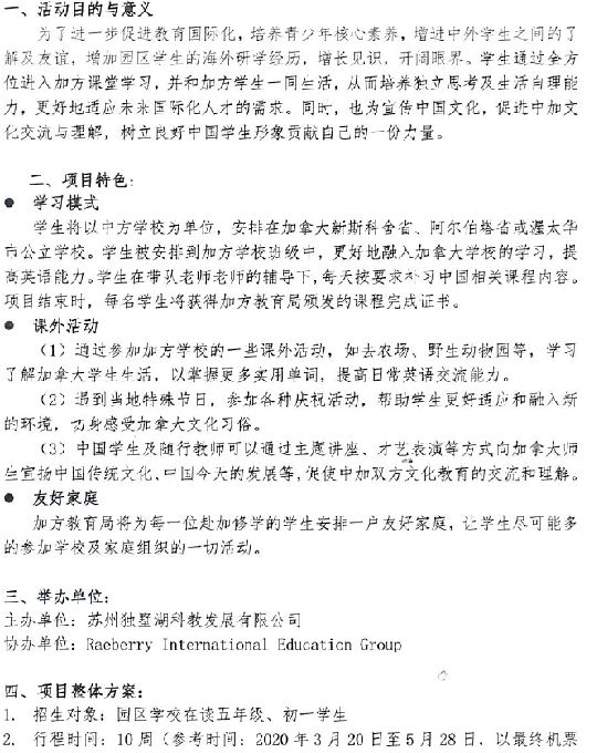 苏州工业园区中小学生赴加拿大短期修学项目招生简章 来源: 发布时间:2019-12-20 00:00:00 浏览次数: 次 【字体:小 大】 2020园区中小学生赴加拿大短期修学项目招生简章.pdf 分享到: 【打印正文】
