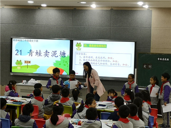 在展示的过程中他们激情洋溢,从不同角度、风格各异地向大家展示“智慧教育”的课堂。邱芸老师执教的语文课《青蛙卖泥塘》轻松灵动,学生由讲台下的“观众”转变为教学活动中的“演员”,教师从讲台上的“演员”转变为台下的“观众”,学生兴趣盎然;汪妍老师执教的《沙漠中的绿洲》活泼有趣,结合学生课前学习内容针对性地设置了内化提升坡度训练,学生在轻松地氛围中掌握了两种不同的写作方法;马玲老师执教的《黄山奇松》注重学生自主学习能力和口语表达能力的培养,课堂绽放出合作互学、学生展示、同伴评价的新风景。马秋玲老师的《比例尺》有效设计问题情境,以小组学习的方式组织讨论、探究和展示。邹烨老师执教的《做有趣的磁铁玩具》寓学于乐,遵循科学来源于生活,又应用于生活的理念,在培养学生实践能力上做文章;许文捷老师的《20世纪的艺术大师——马蒂斯》一课,重体验、重情感、重创新,是一节具有现代教育气息的美术课,让人耳目一新。