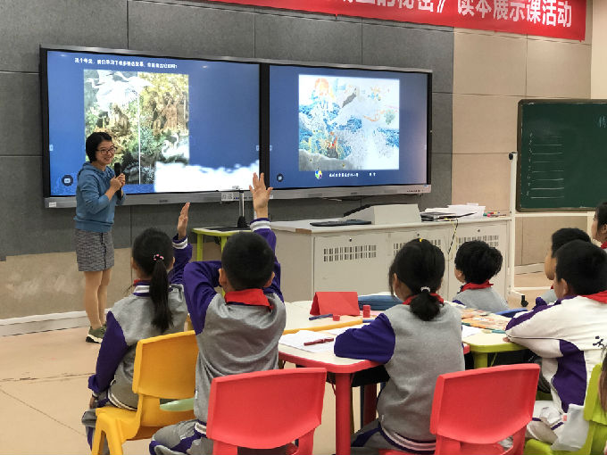 谢峰、郑滕滕、陈吉老师分别执教了习作、说明文和小古文教学,课型丰富,具有较强的引领作用。谢峰老师的《我的心儿怦怦跳》,聚焦习作教学,利用易加互动等信息手段设计翻转课堂教学,把学习自主权交给学生,把课堂交给学生,将教师定位于激疑、导学、唤醒的位置,因学定教,很好地激发了学生学习和探究的热情。郑滕滕老师执教的《太阳》这篇说明文,结合学生课前自主学习内容,课堂上设计了提升坡度的进阶训练,通过对比阅读,体会说明文和散文的区别,通过改写训练,内化说明文的特点,小组合作、协作创作、展示评价,环环相扣、层层深入,学生在逐步探究中突破了重难点。陈吉老师执教的《精卫填海》,是小古文教学,新的课型,新的思考,陈老师能够聚焦学生核心素养,孩子们以小组学习的方式组织讨论、探究和展示,教师相机点拨、补充和总结,激发了学生学习小古文的热情。
