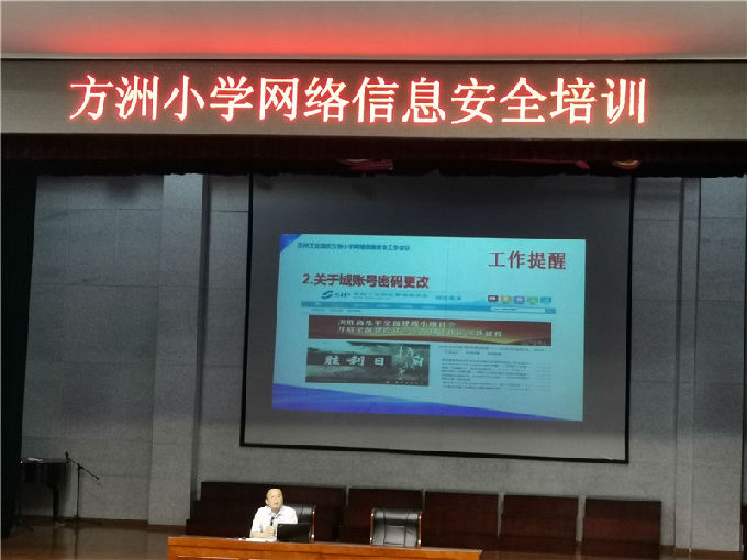 9月9日下午,方洲小学“2019-2020学年度第一学期网络信息安全培训”在方圆剧场举行,全体教师参加了此次培训活动。