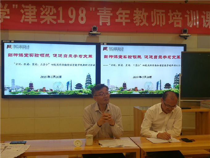 5月20日下午,由“方洲小学、胜浦实小、星洲小学、三实小”组成的融创督学责任区,又一次相约星洲小学,顺利举行了翻转课堂教学观摩研讨活动。活动邀请了苏州工业园区教育学会庄红校长、陶培政校长和微课程教学法创始人、原苏州市电教馆馆长金陵先生。