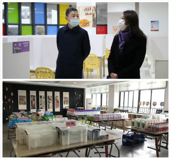 督导组首先视察了入校安检程序。学校门口,保安严格执行入校安检工作:出示苏城码、查验轨迹码、测量体温,登记信息后方可进入校门,为校园防疫铸建了第一道安全防线。校门内外,学校设置的15个临时隔离点和防疫知识展板更为校园增添了一份安全保障。