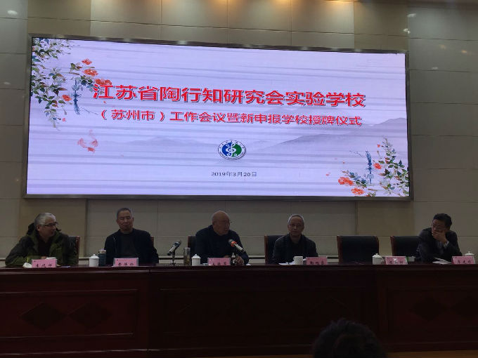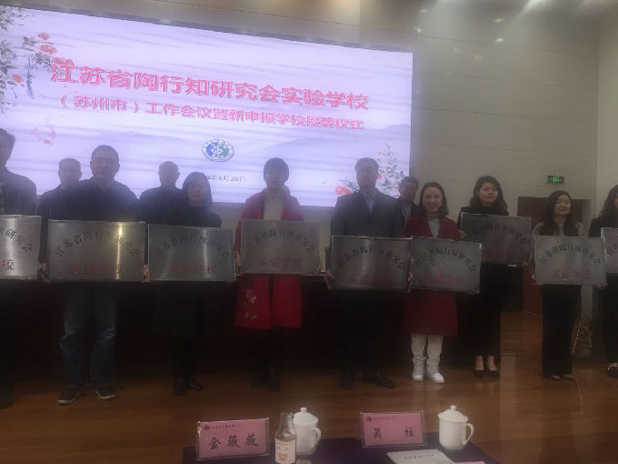 2019年3月20日下午,我校参加了在吴中区东湖小学举行的“江苏省陶行知研究会实验学校”工作座谈会暨新申报学校授牌仪式,大会由江苏省陶行知研究会费炜炜秘书长主持,方洲小学等十三所苏州市中小学校被授予了“江苏省陶行知研究会实验学校”的铜牌,这标志着我校在学陶、研陶、师陶活动有了一个新的起点。