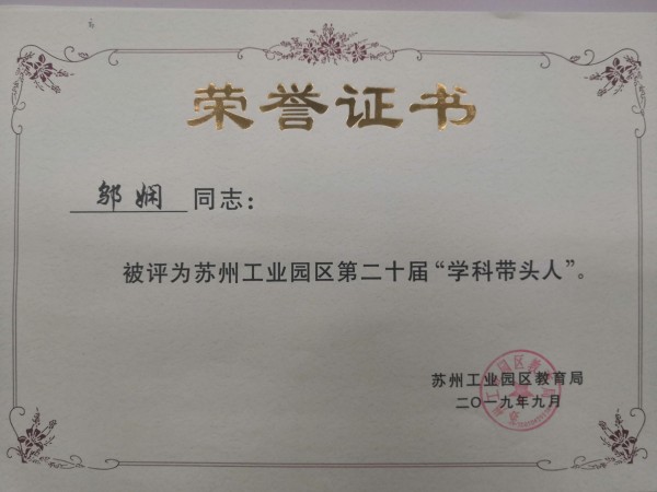 夏 令:被评为园区第二十届“学科带头人”(德育类)