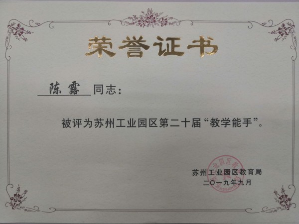 陈 露:被评为园区第二十届“教学能手”(小学数学)