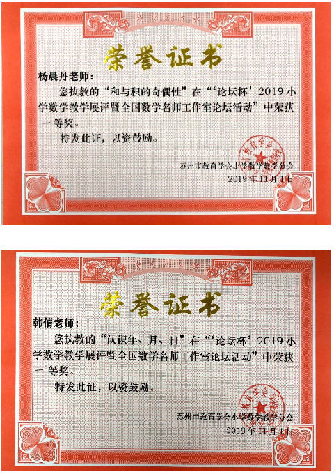 喜报:祝贺杨晨丹、韩倩两位老师在“论坛杯”2019小学数学课堂教学大赛中喜获一等奖! 来源: 发布时间:2019-11-18 00:00:00 浏览次数: 次 【字体:小 大】 喜 报 祝贺杨晨丹、韩倩两位老师在“论坛杯”2019小学数学课堂教学大赛中喜获一等奖! 分享到: 【打印正文】