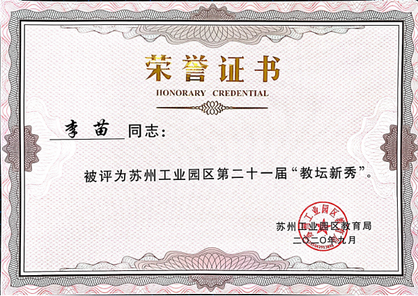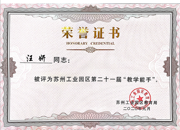 热烈祝贺我校以下11位老师荣获园区第二十一届“学科带头人”“教学能手”“教坛新秀”称号: