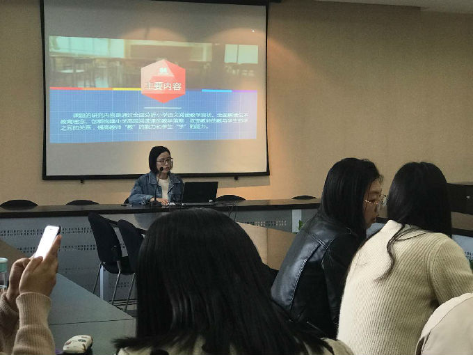 与会老师认真倾听汇报,互相学习经验。老师们一致认为该课题定位准确、目标针对性和实践意义强,对我校高段语文阅读课的教学工作具有很好的借鉴价值。