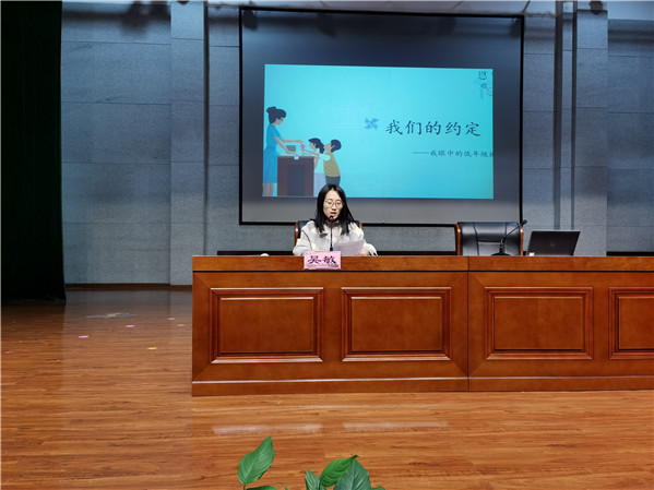 本次会议由课题负责人严芳老师主持,以“班规的C位出道”为主题,请课题组核心成员——班主任代表吴敏老师为大家做了微分享。