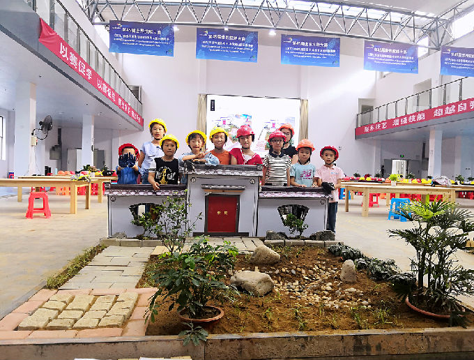 第一天是徽派园林搭建活动。天气炎热,孩子们刚开始因为从未经历过这项活动,看到图纸和满地的工具材料愣住了,小组长也是无从下手。园林老师简单示范之后,孩子们立刻行动起来,很快进入状态:测量、搬砖、栽树、种草干得热火朝天,全然不顾天气的炎热。看他们认真的样子,真有大国小工匠的精神。将近两个小时的搭建,大家终于完成了自己的园林作品。拿到奖状的那一刻,他们收获了成功的喜悦。