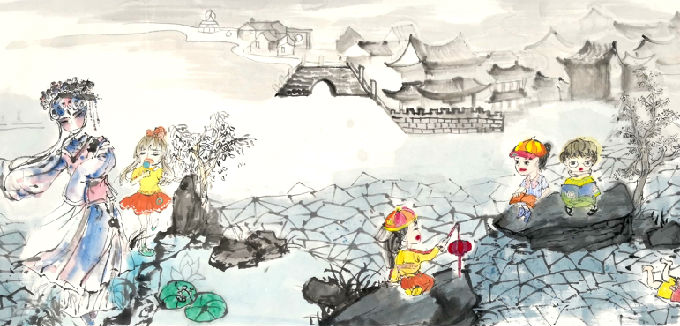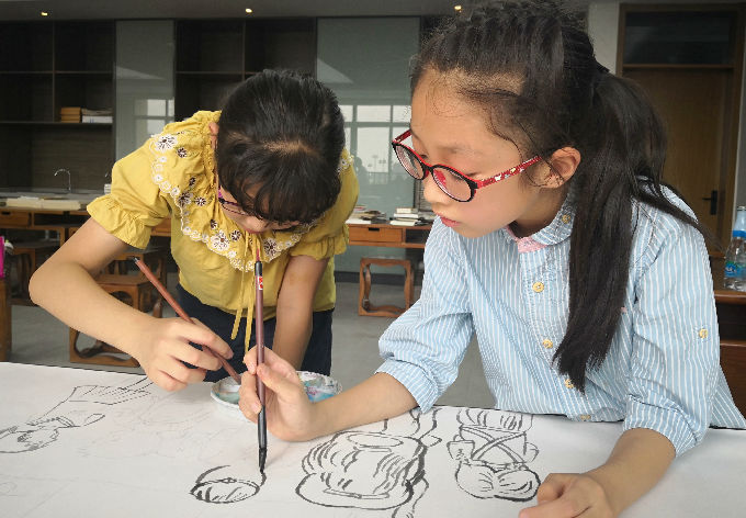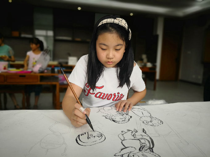 在祖国70周年来临之际,方洲小学童画工作室十余名学子有幸参与了全国中小学水墨长卷《我爱祖国·苏州卷》的绘制。在美术老师的指导下,孩子们从暑期就开始了准备,从搜集素材到绘制草图,从集体研讨到精心描绘,反复修改,多次调整,用诗情画意的水墨和明快缤纷的色彩,完成了十米长卷《苏城学子 校园拾趣》。