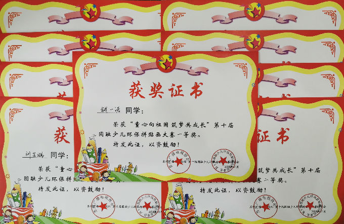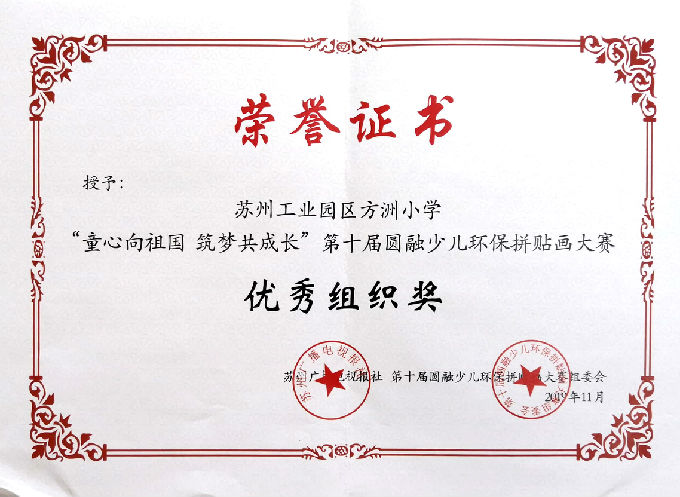 喜报:热烈祝贺方洲小学多名学子在环保拼贴画中获奖! 来源: 发布时间:2019-12-09 00:00:00 浏览次数: 次 【字体:小 大】 苏州工业园区方洲小学多名学生在苏州广播电视报社、圆融时代广场举办的“童心向祖国,筑梦共成长”第十届圆融少儿环保拼贴画大赛中获奖,学校被评为“优秀组织奖”。其中钱一诺同学获一等奖;赵子馨、苏伊一等4名同学获二等奖;潘柳伊、郑宇淇等4名同学获三等奖;特此表示祝贺! 撰稿:曹科波图片:美术组审核:唐啟晴 分享到: 【打印正文】