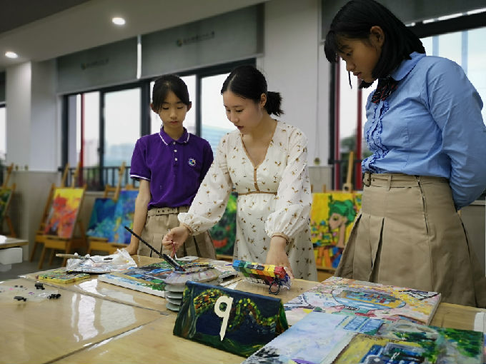 此次活动既丰富了同学们的课余生活,又让同学们对方洲校园美景有了更深入的了解和接触,他们也成为生机勃勃的校园中一道美丽的风景线。同时,展出的作品充分体现了方洲学子良好的美术素养和多年来学校美术特色建设的积累。自建校以来,学校就立足于方圆课程,把“多彩童画”作为学校特色发展的路径,以“让每一个孩子演绎不一样的精彩”为特色培养目标,注重每一位学生的整体素养,着色每一位学生的特色发展:汇编校本课程、打造美术工作室、组织学生去各大美院高校采风写生……将美术教育从课内拓展到课外,孩子们浸润在童画的氛围中,变得爱思考、爱表达,充分体验了艺术的魅力,提升了艺术的素养。