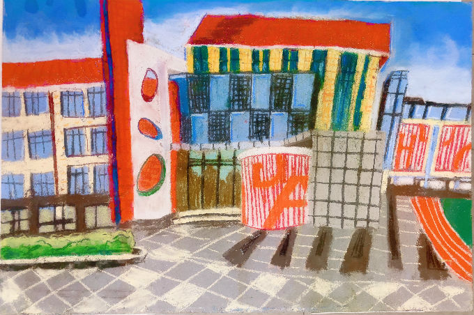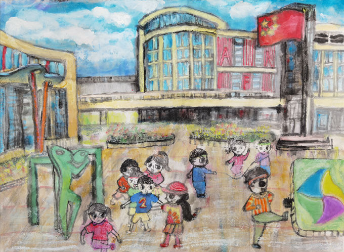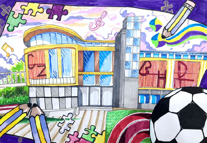 诗情画意的水一方、焕然一新的方悦楼、生机勃勃的开心农场、庄重典雅的学校大门、视野开阔的UP广场……一根根柔和流畅的线条,一抹抹鲜明活泼的色彩,小画家们从选景、构图、起稿、设色,勾画出一幅幅个性鲜明,富有童真童趣的画作:整洁明亮的教学楼、悦动青春的绿茵场、鸟语花香的开心农场……多姿多彩的校园在同学们的画笔下熠熠生辉。