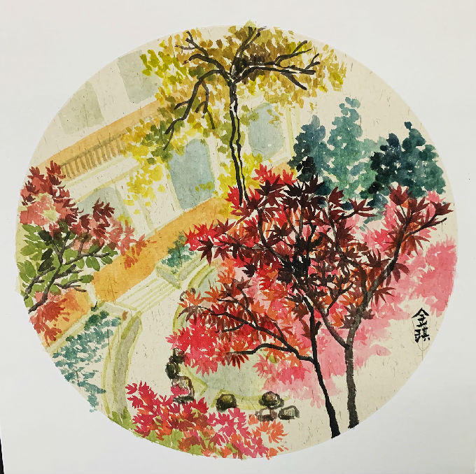 方洲娃手绘校园十景 歌颂母校拾年方彩