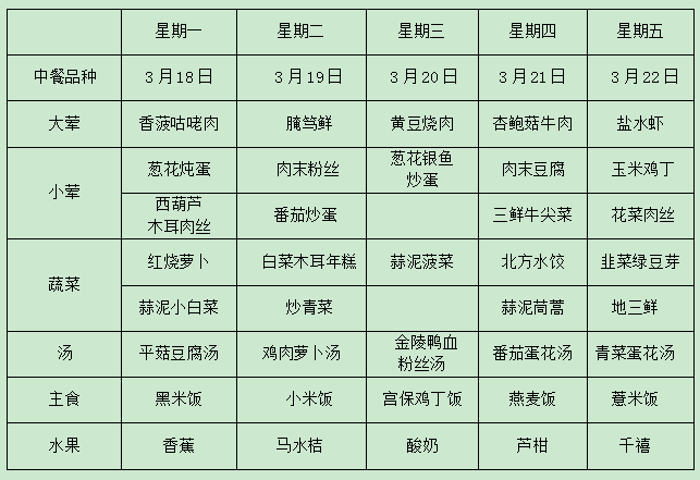 方洲小学第五周师生午餐菜单