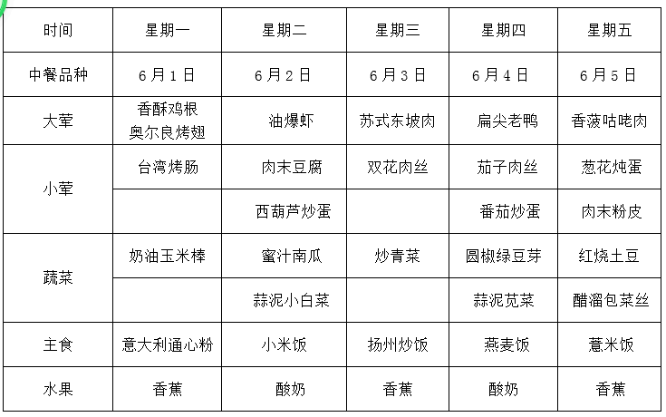 方洲小学第八周师生午餐菜单
