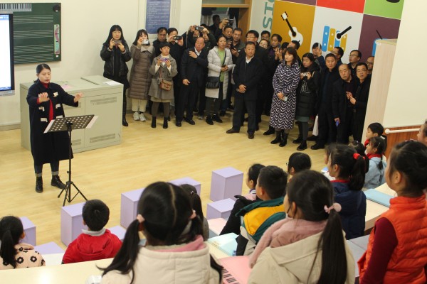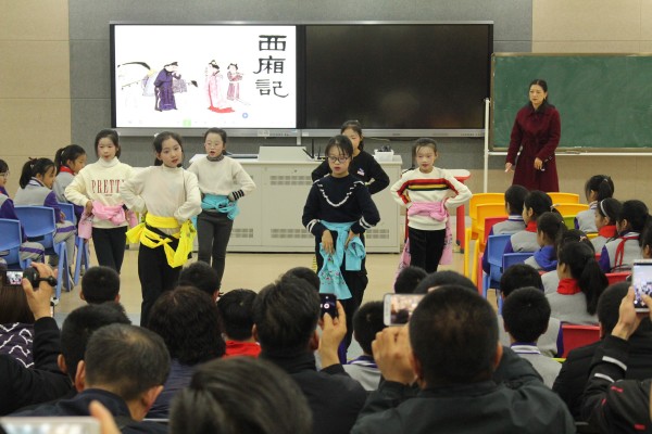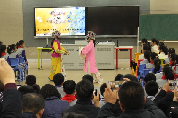 首先,代表团饶有兴趣地观摩了盛群老师执教的音乐课《走进百年昆曲》。灵动的课堂设计、丰富的昆曲知识、精彩的现场展示、多样的课堂生成,使来宾老师啧啧称赞。特别是“昆曲”小演员们,华美的装饰扮相、轻柔的吴侬软语,加上歌唱与舞蹈的巧妙结合,让来宾切实体会到昆曲的“婉丽妩媚、一唱三叹”。课一结束,现场掌声热烈,学员老师们的脸上笑容满满。