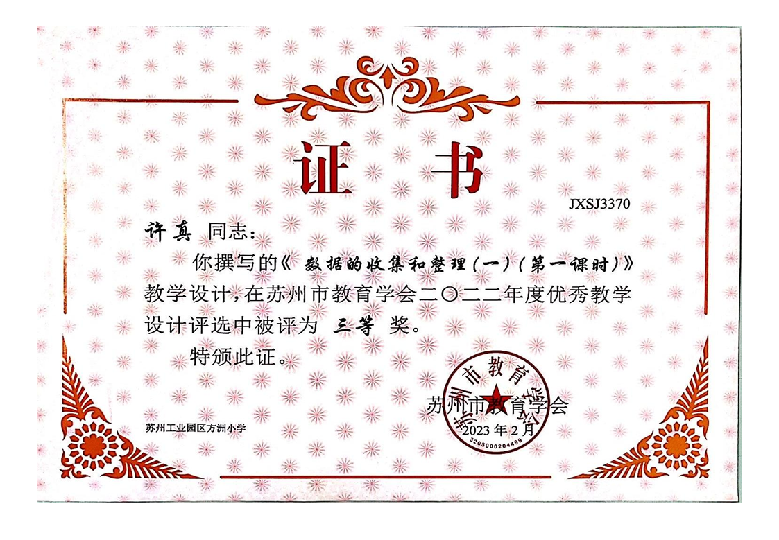 许真《数据的收集与整理(一)》教学设计三等奖