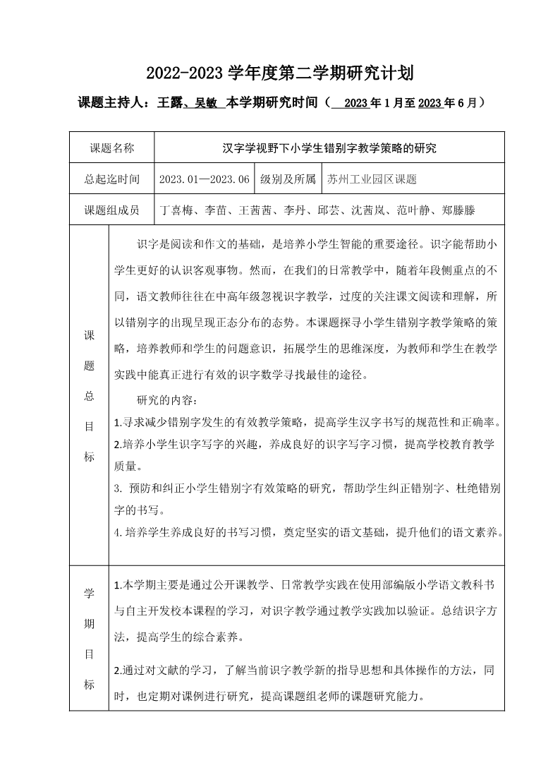 2022-2023学年度第二学期研究计划